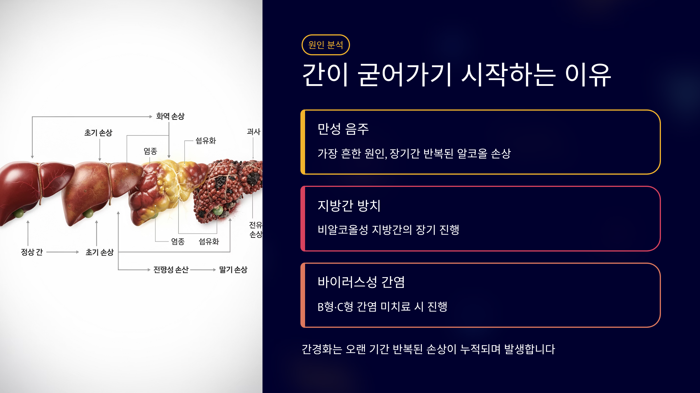간경화는 조용히 시작되지만 한 번 진행되면 되돌리기 어렵습니다.