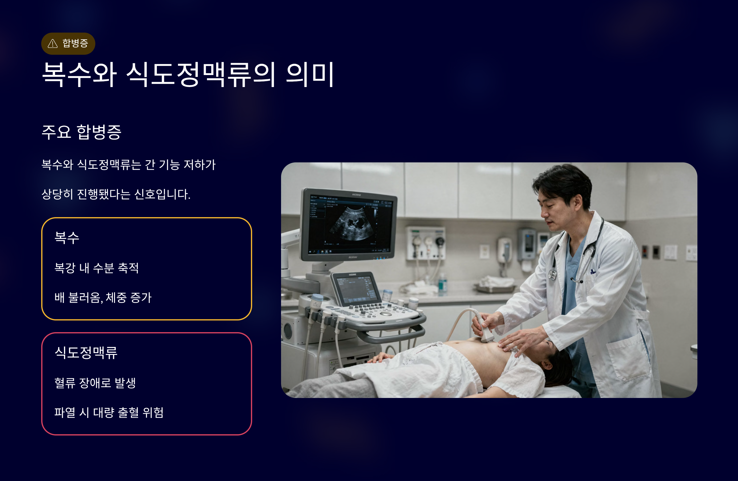 복수와 식도정맥류는 간 기능 저하가 상당히 진행됐다는 신호입니다.