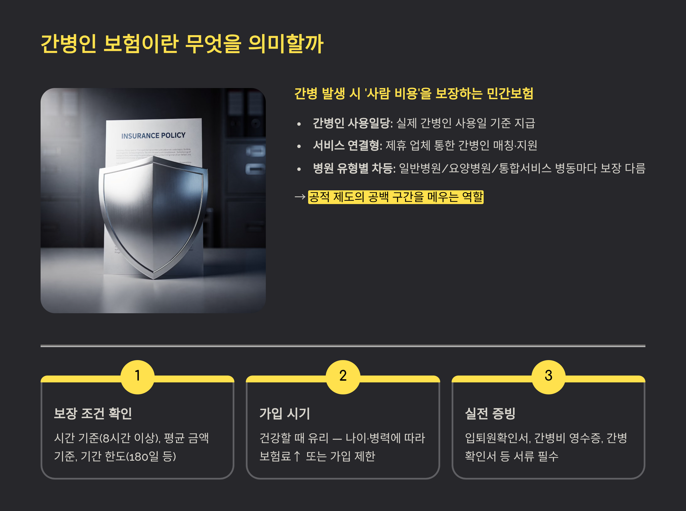 그 빈 구간을 간병인 보험이 어떻게 메우는지 현실적으로 안내해드릴게요.