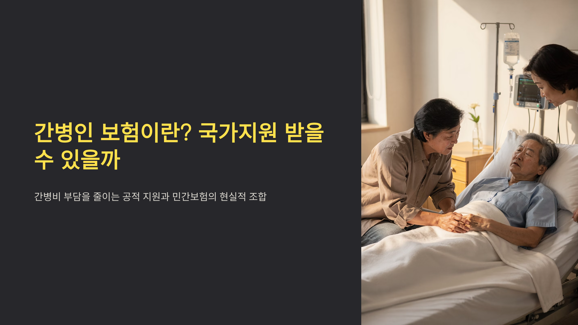 그래서 많은 분이 간병인 보험을 찾고, 동시에 “간병인 국가지원은 없나?”를 검색하죠.