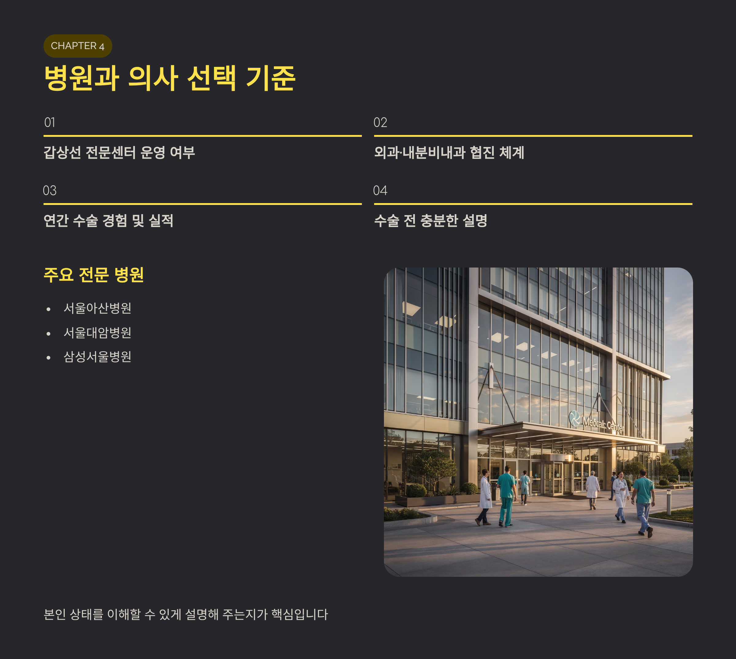 지금부터 갑상선암 수술을 현실적인 기준으로 정리해 드리겠습니다.