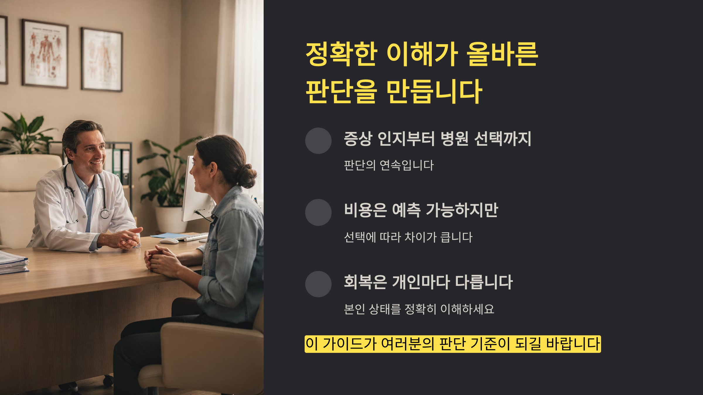 증상 인지부터 병원 선택까지 이어지는 판단의 연속입니다.