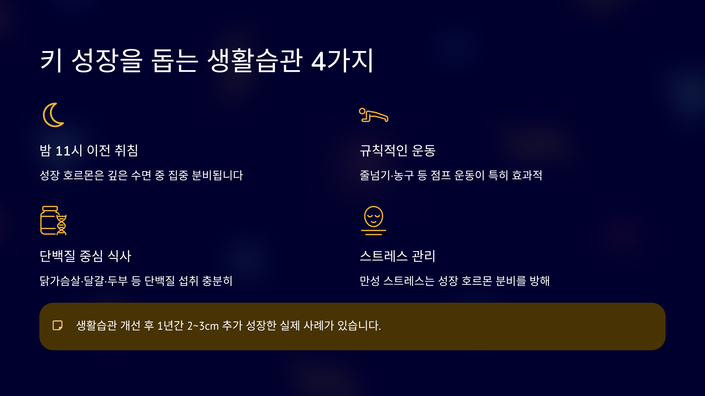 실제 사례에서도 생활습관을 바꾼 뒤 1년 동안 키가 2~3cm 더 자랐다는 후기가 있습니다.