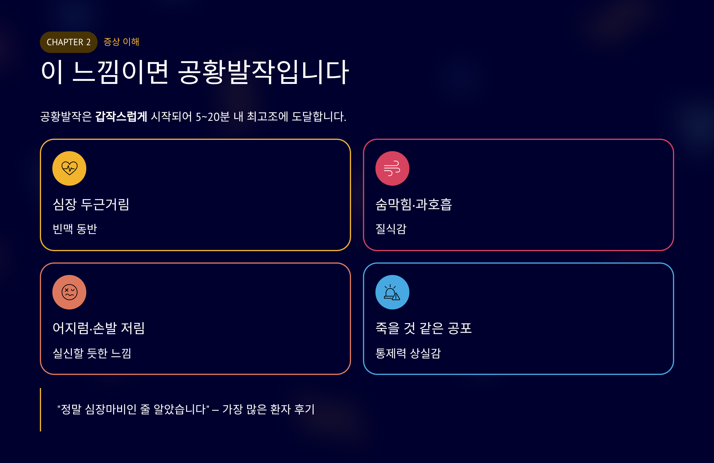 공황장애 증상은 예고 없이 찾아오며 일상을 급격히 위축시킵니다.