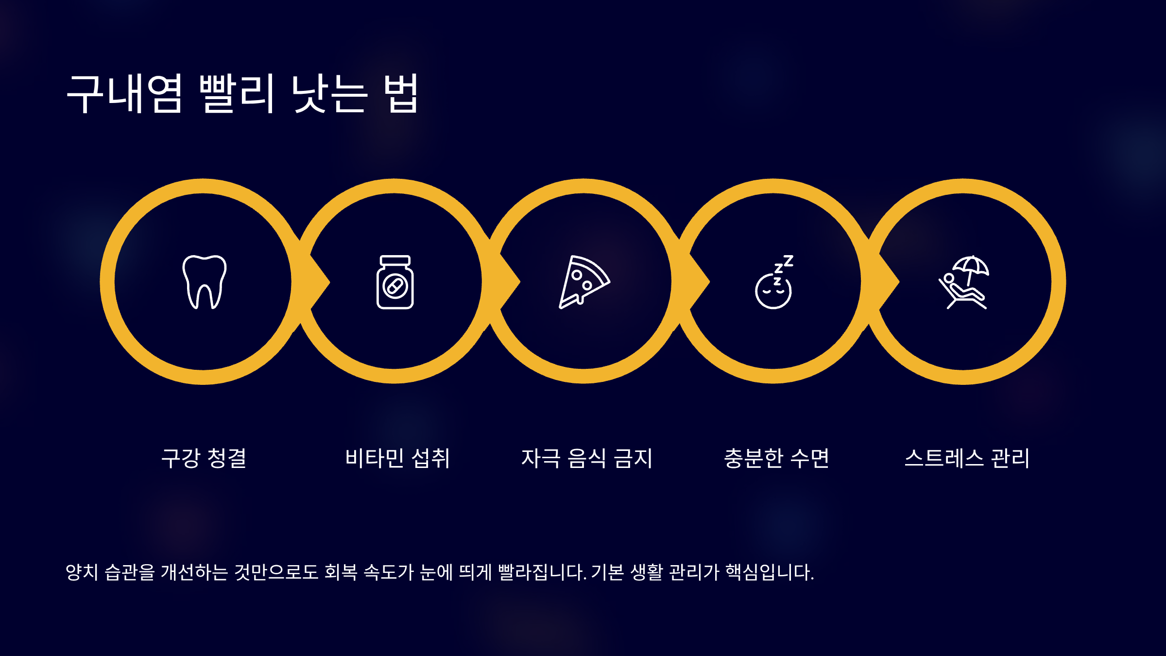 구강 청결 관리와 충분한 휴식이 중요합니다.