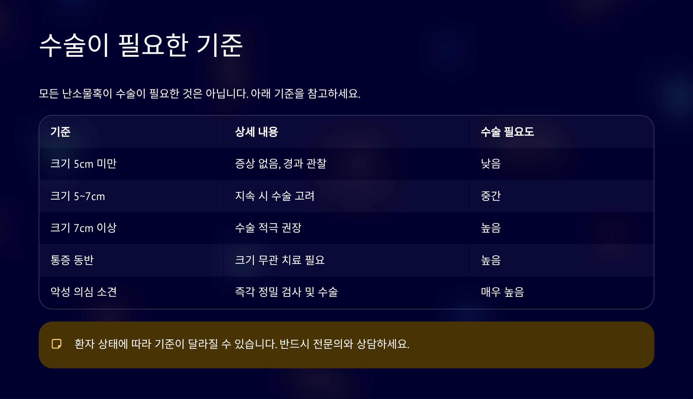 보통 5~7cm 이상이면 수술을 고려하는 경우가 많습니다.
