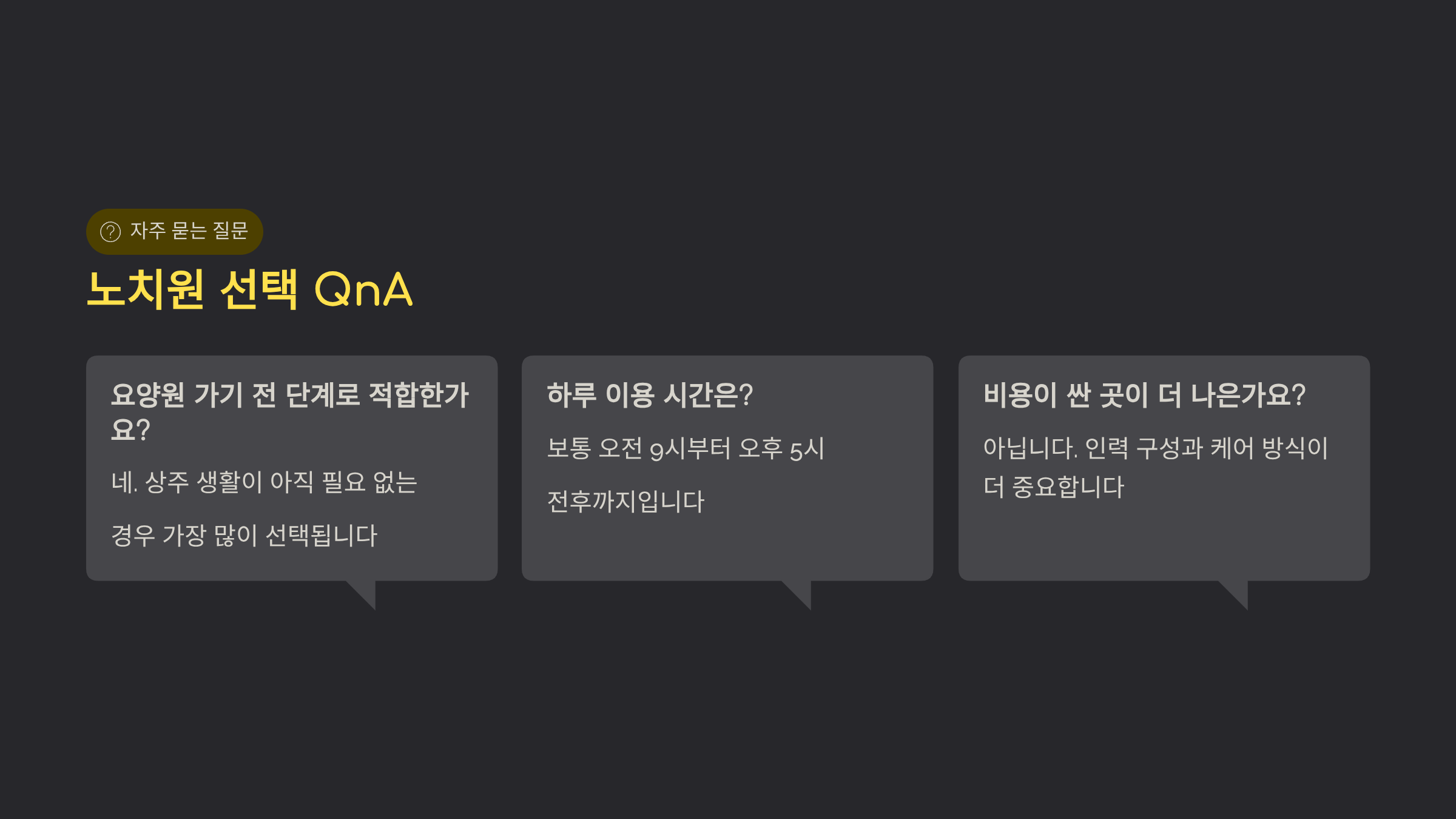 A. 아닙니다. 인력 구성과 어르신 케어 방식이 더 중요합니다.