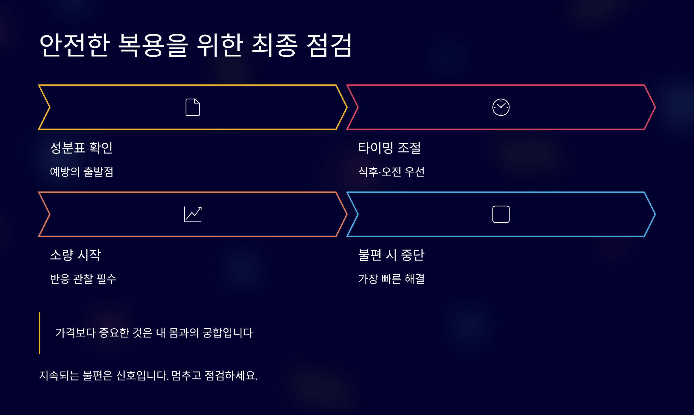 부작용은 성분 자체보다 복용 타이밍과 개인 컨디션에 의해 커지는 경우가 많습니다.