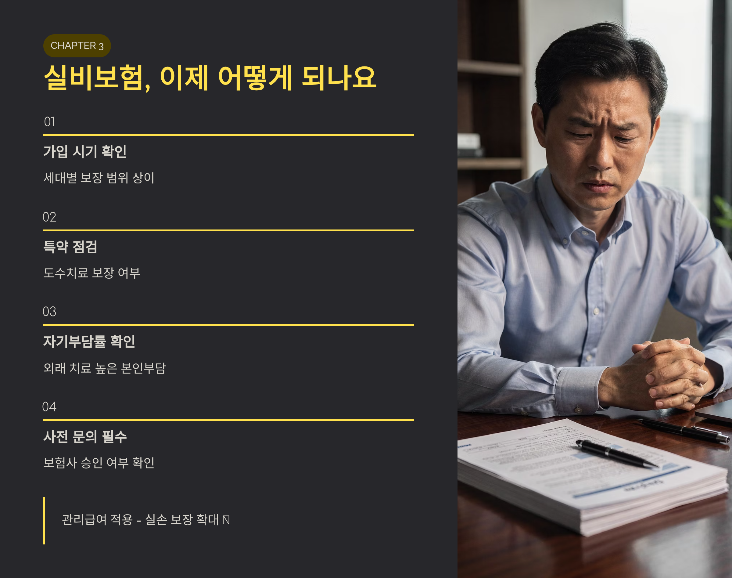 관리급여가 적용되더라도 실손 보장이 자동으로 늘어나는 것은 아닙니다.
