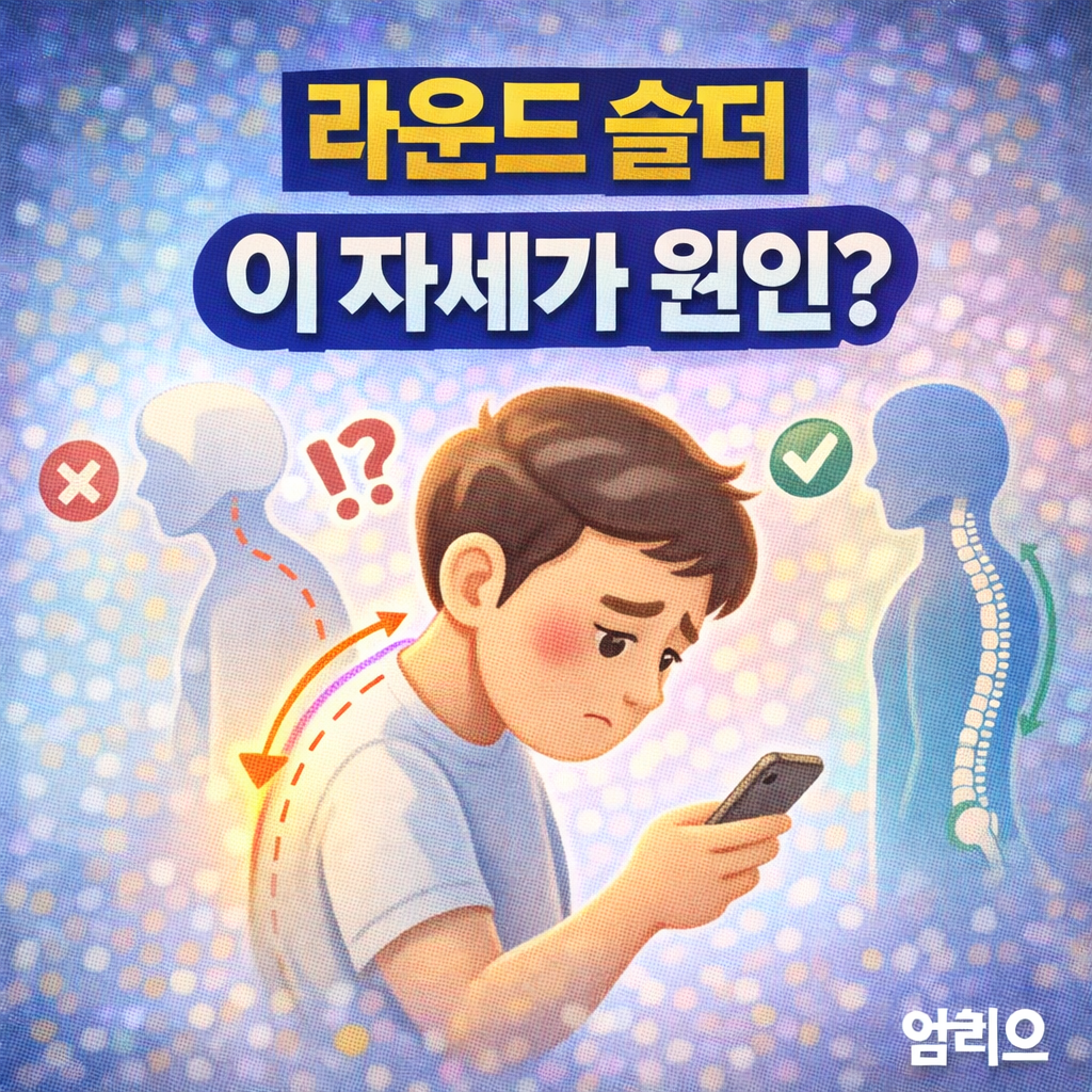 라운드 숄더란 무엇인지 이해하고, 원인과 증상을 함께 봐야 합니다.