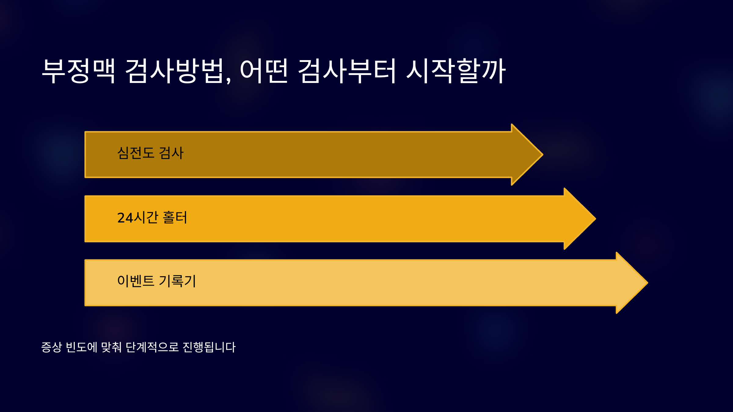 검사는 한 번으로 끝나기보다, 증상 빈도에 맞춰 단계적으로 진행됩니다.