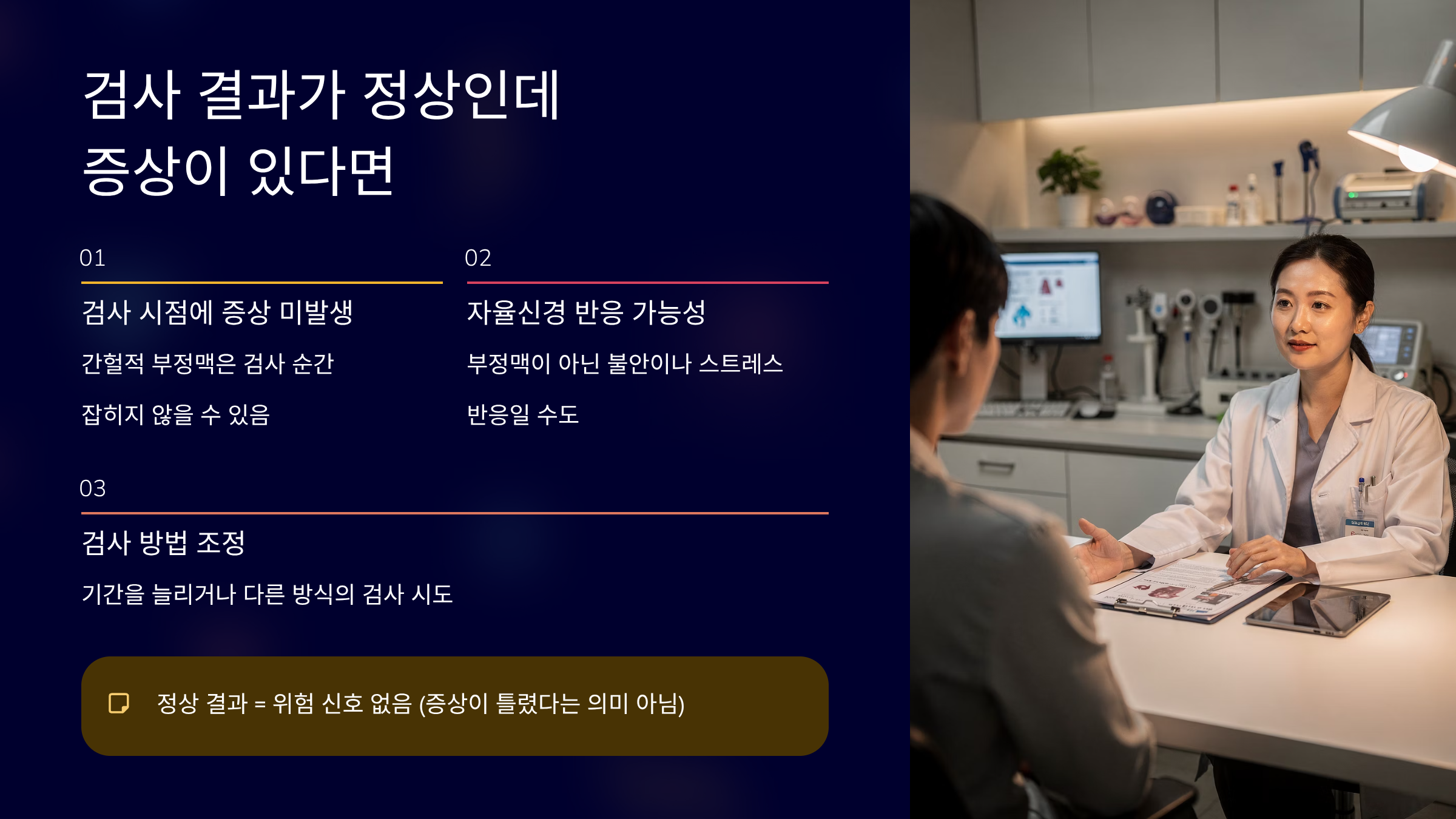 검사를 이해하면 불안은 줄고, 선택은 훨씬 명확해집니다.