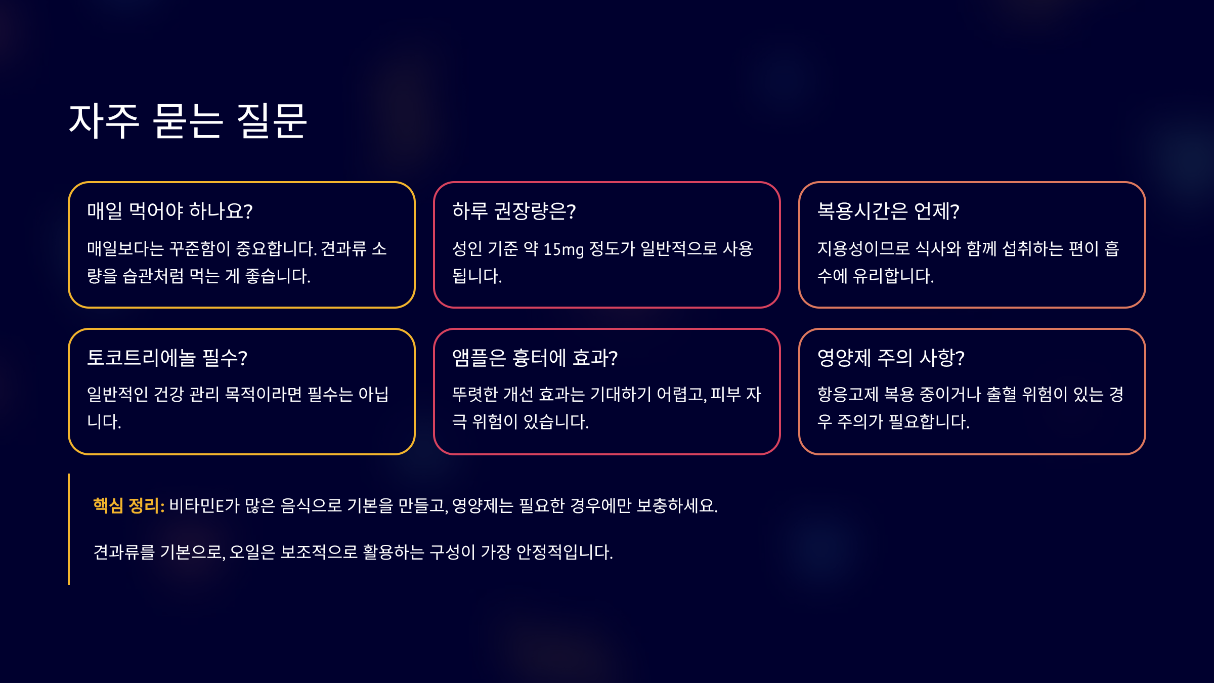 비타민E는 “많이”보다 “꾸준히”가 이깁니다.