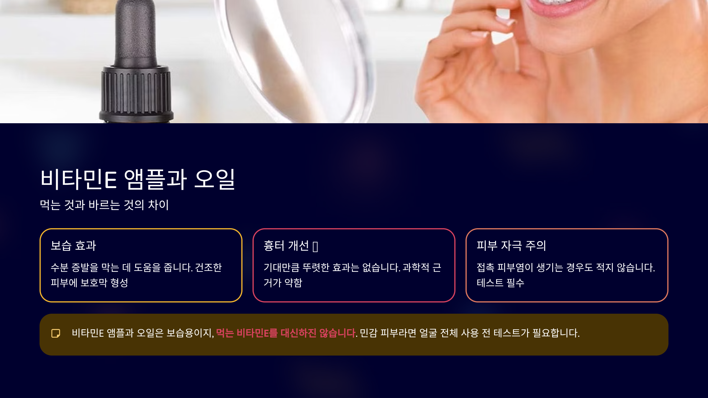 바르는 비타민E는 ‘보습 보조’로 보면 마음이 편합니다.