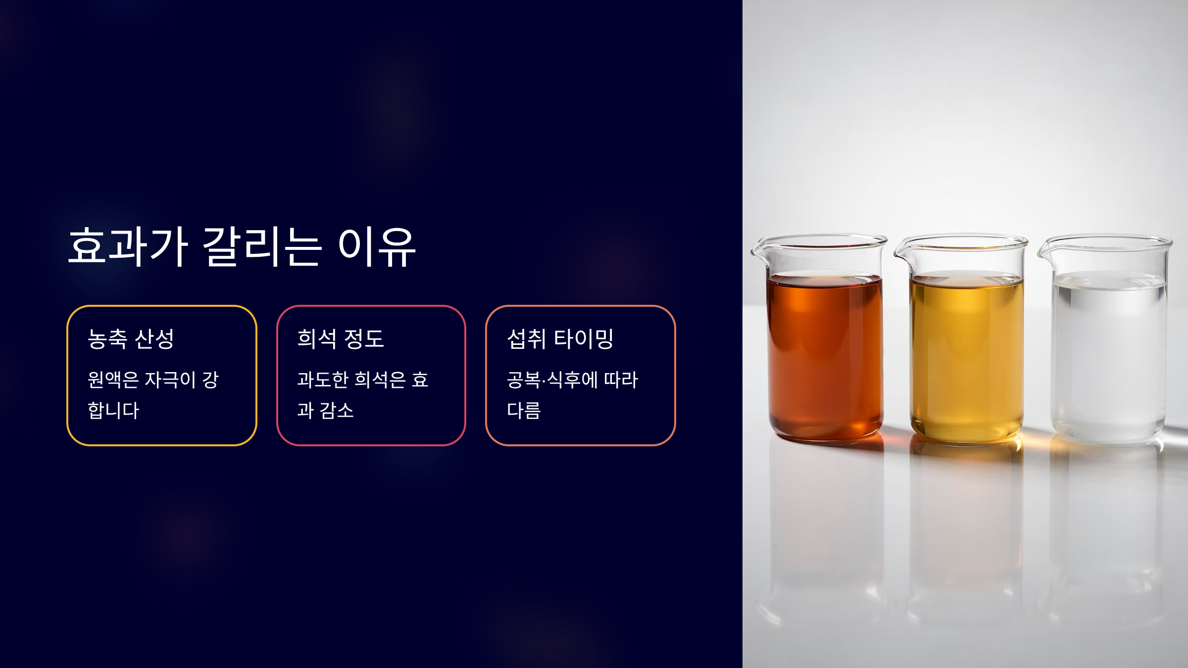 정확한 비율과 섭취 시간이 효과를 좌우합니다.