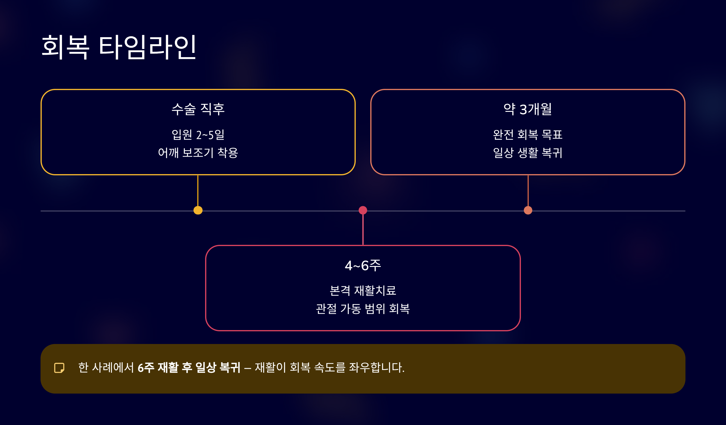 한 사례에서는 6주 재활 후 일상 복귀했습니다.