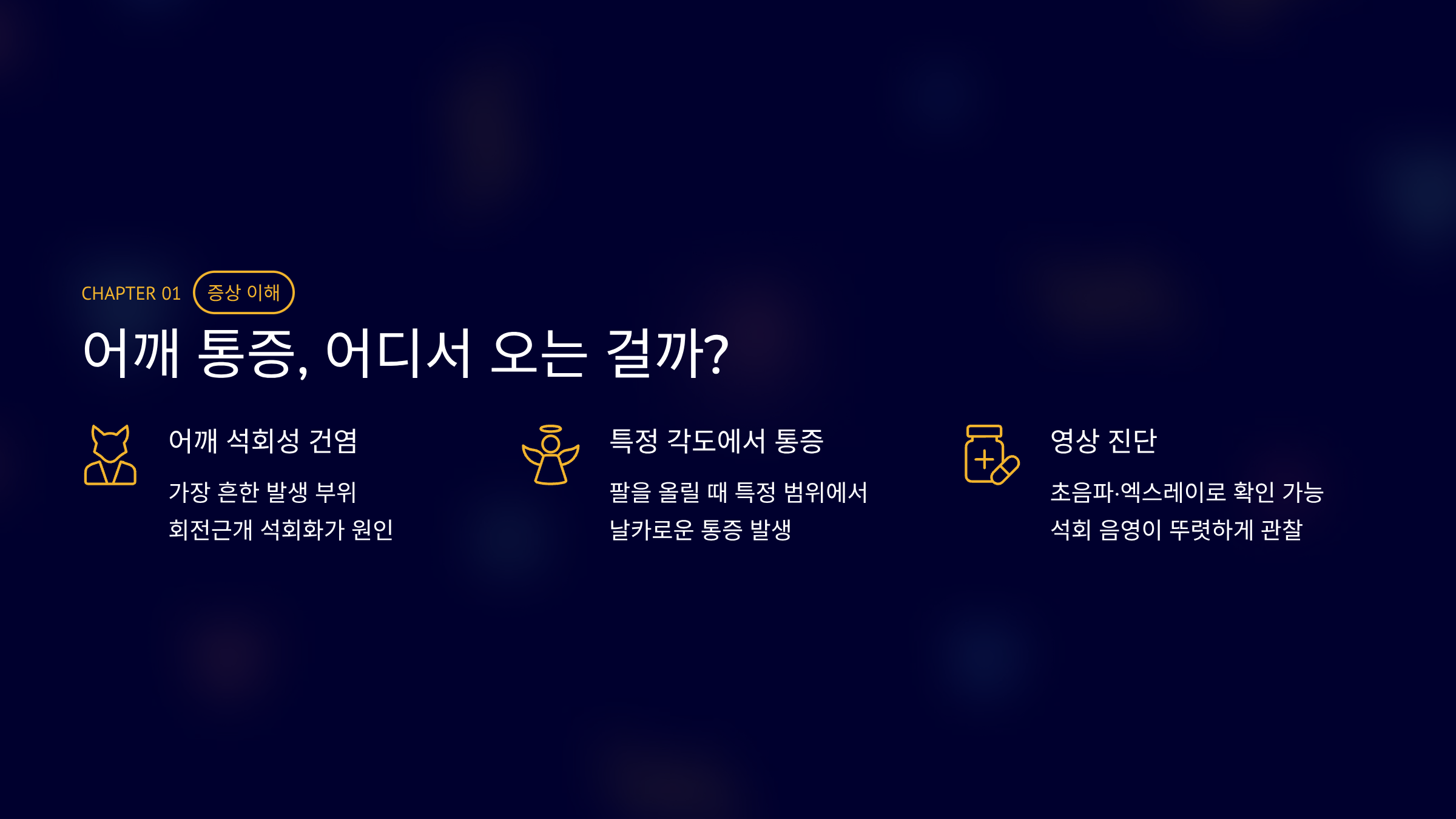 석회성 건염은 갑작스러운 통증이 특징입니다.