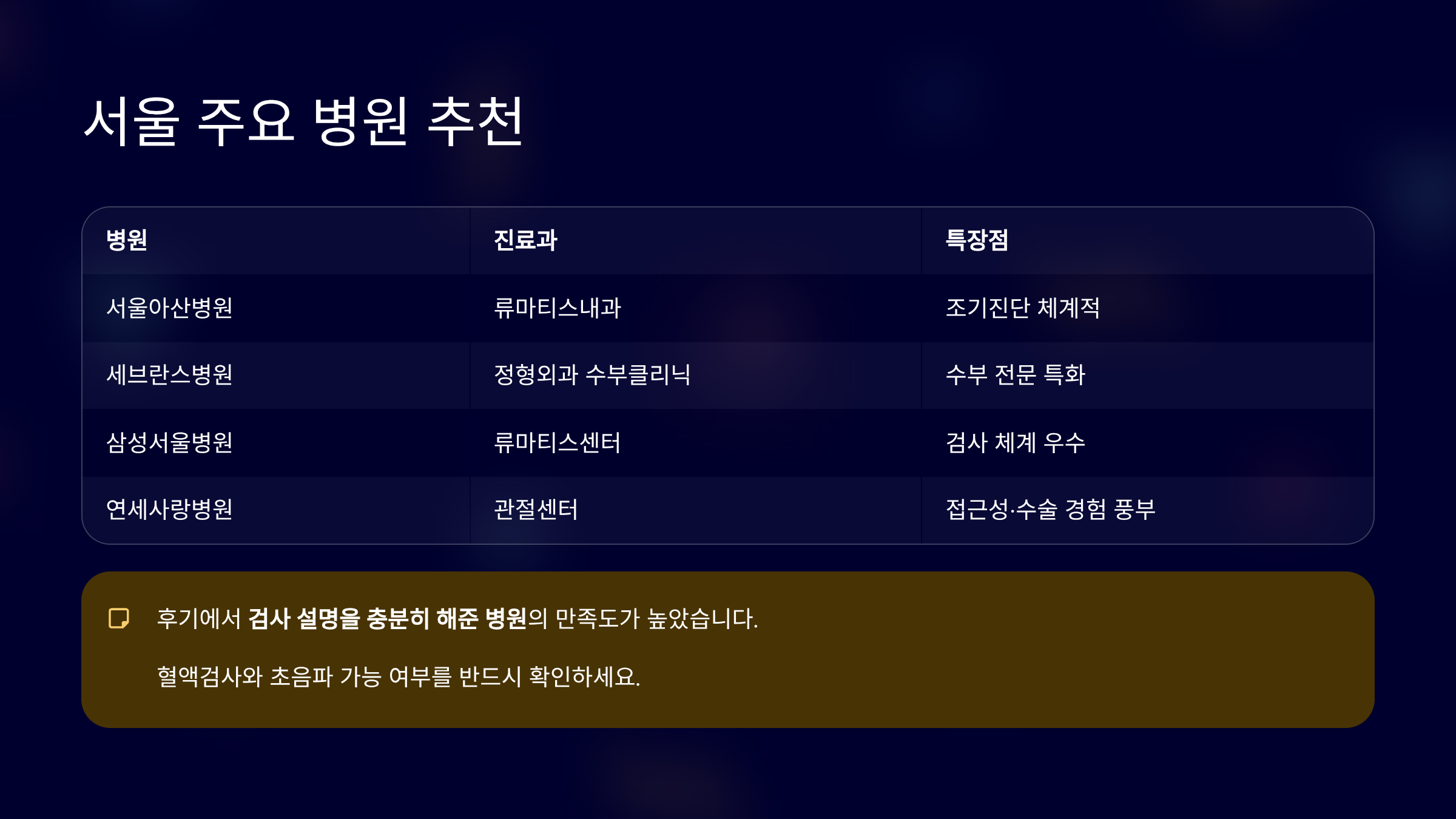 - 삼성서울병원 류마티스센터 – 검사 체계 우수