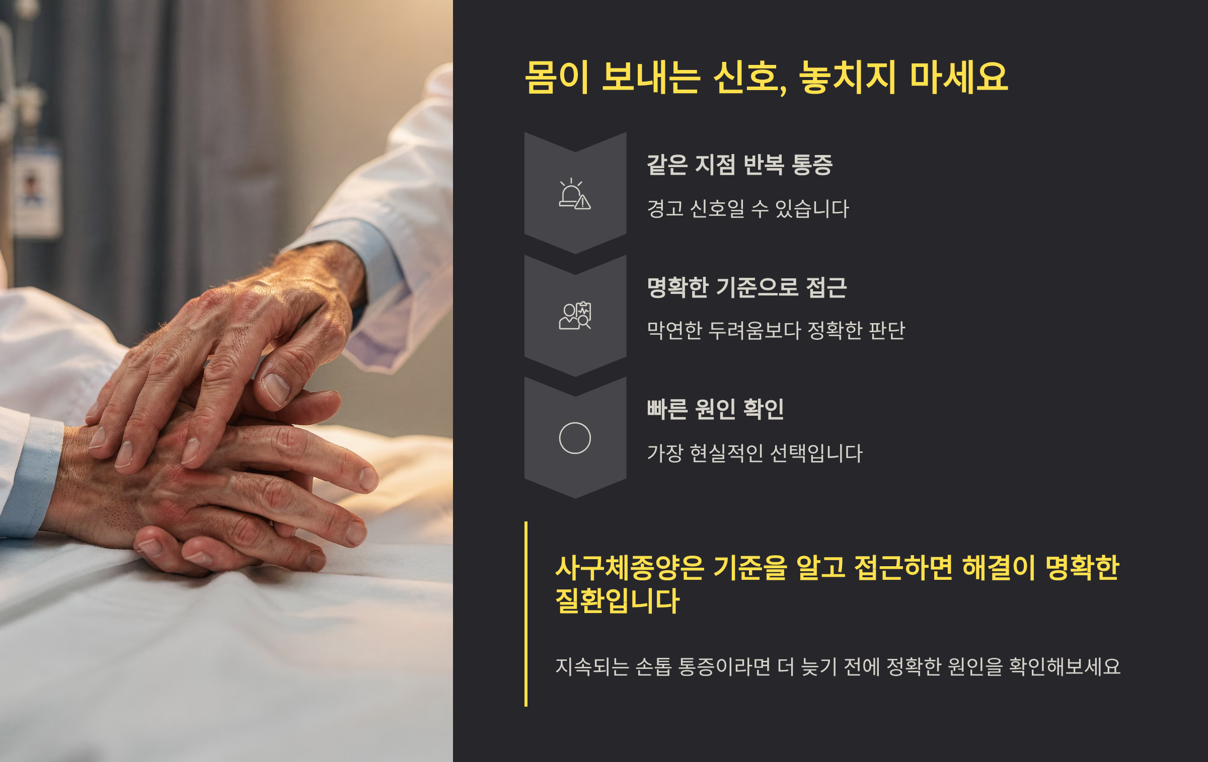 하지만 통증이 같은 자리에서 계속 반복된다면 그건 단순한 우연이 아닐 수 있습니다.