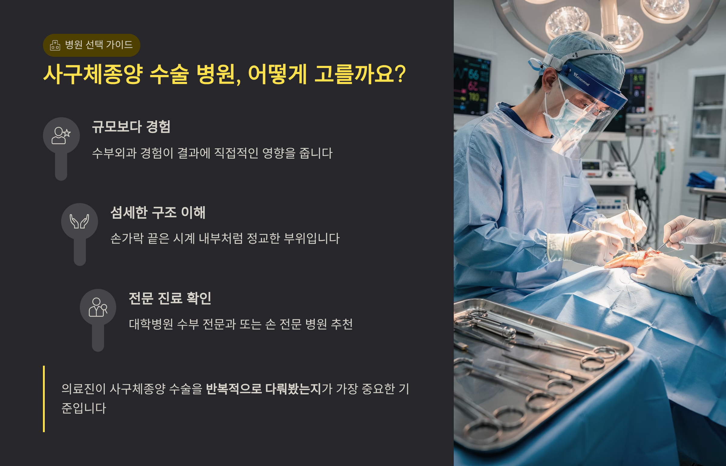 사구체종양 수술 병원은 규모보다 경험을 먼저 보는 것이 중요합니다.