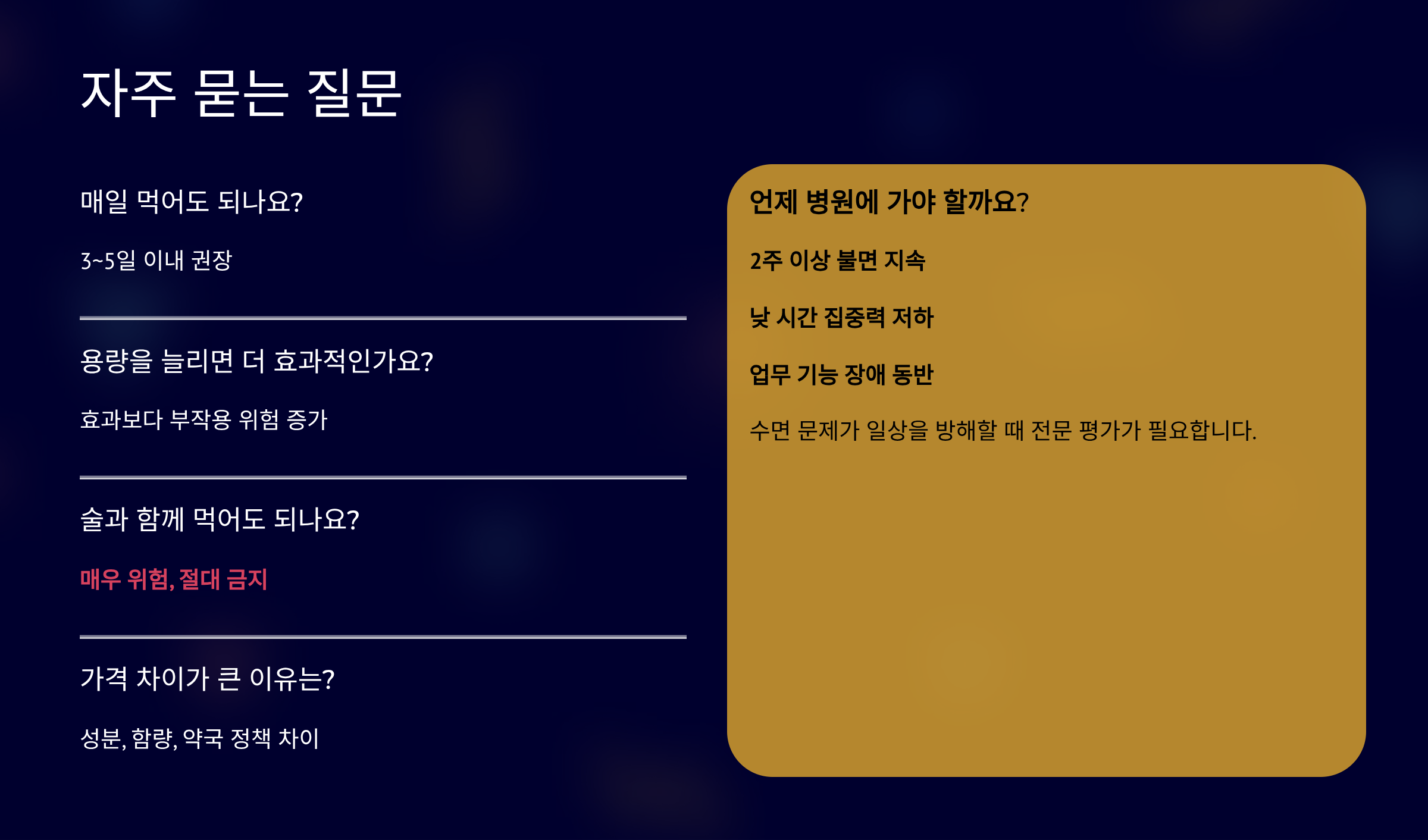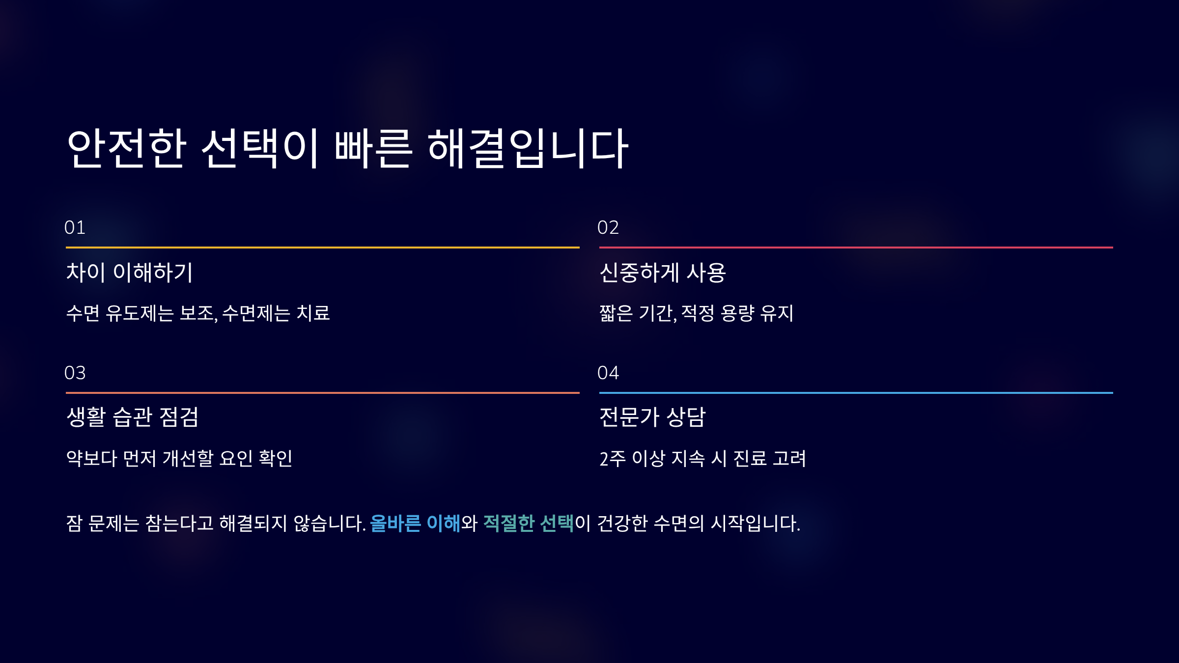 수면 유도제는 짧게, 신중하게 사용하는 보조 수단입니다.
