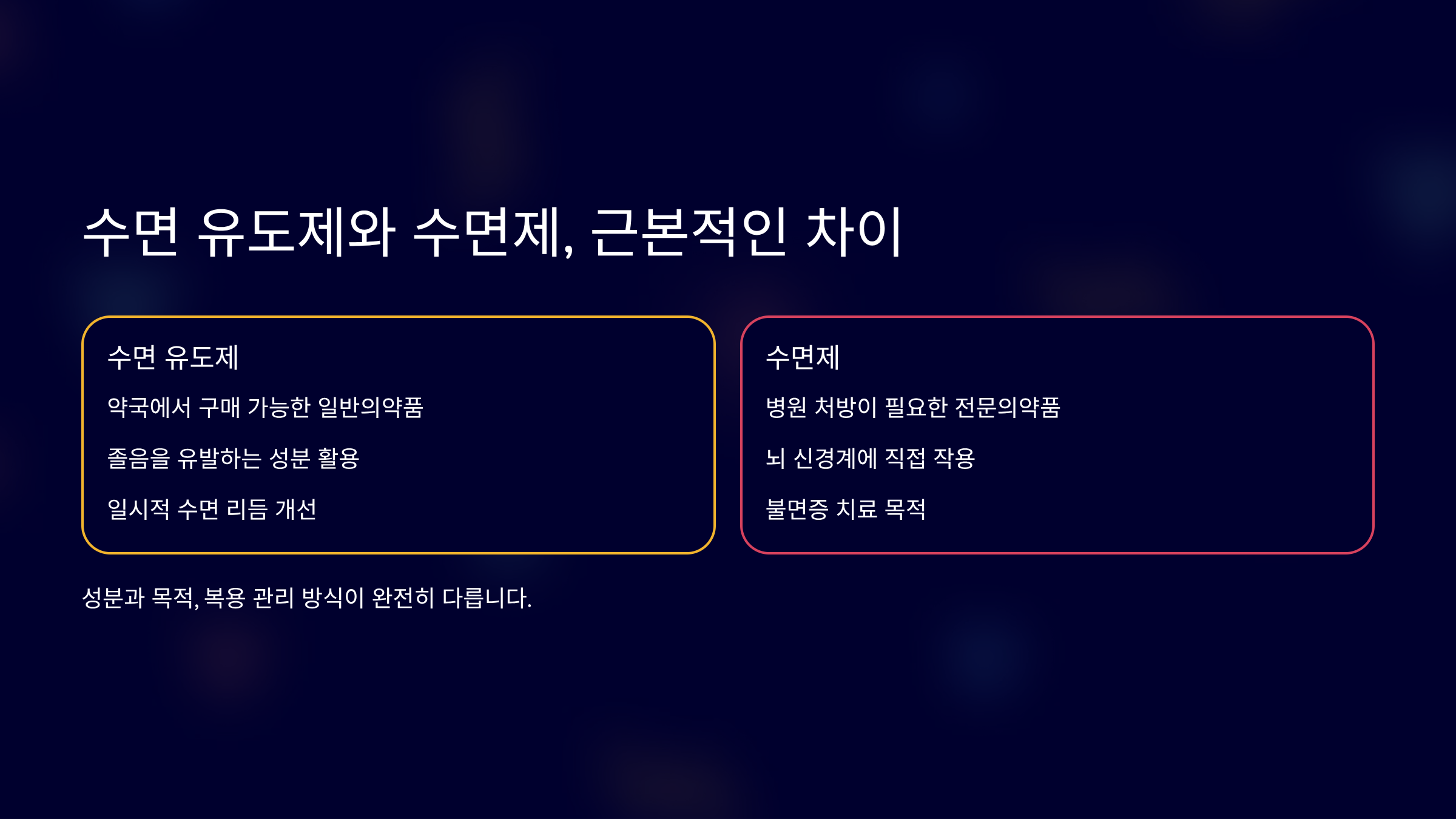 수면 유도제 수면제 차이는 성분과 목적, 그리고 복용 관리에서 갈립니다.