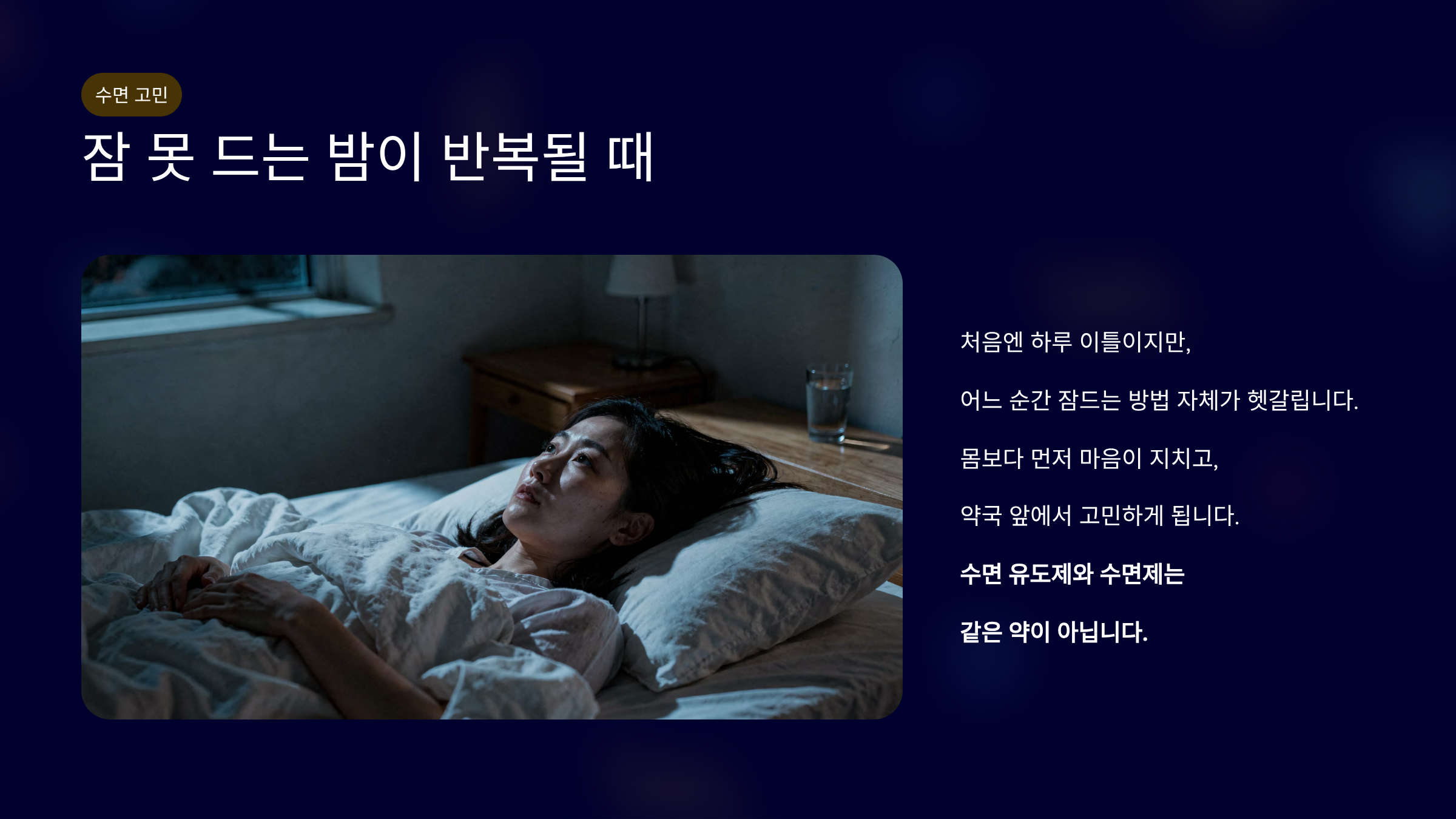 잠을 못 자는 밤이 반복되면, 몸보다 먼저 마음이 지칩니다.
