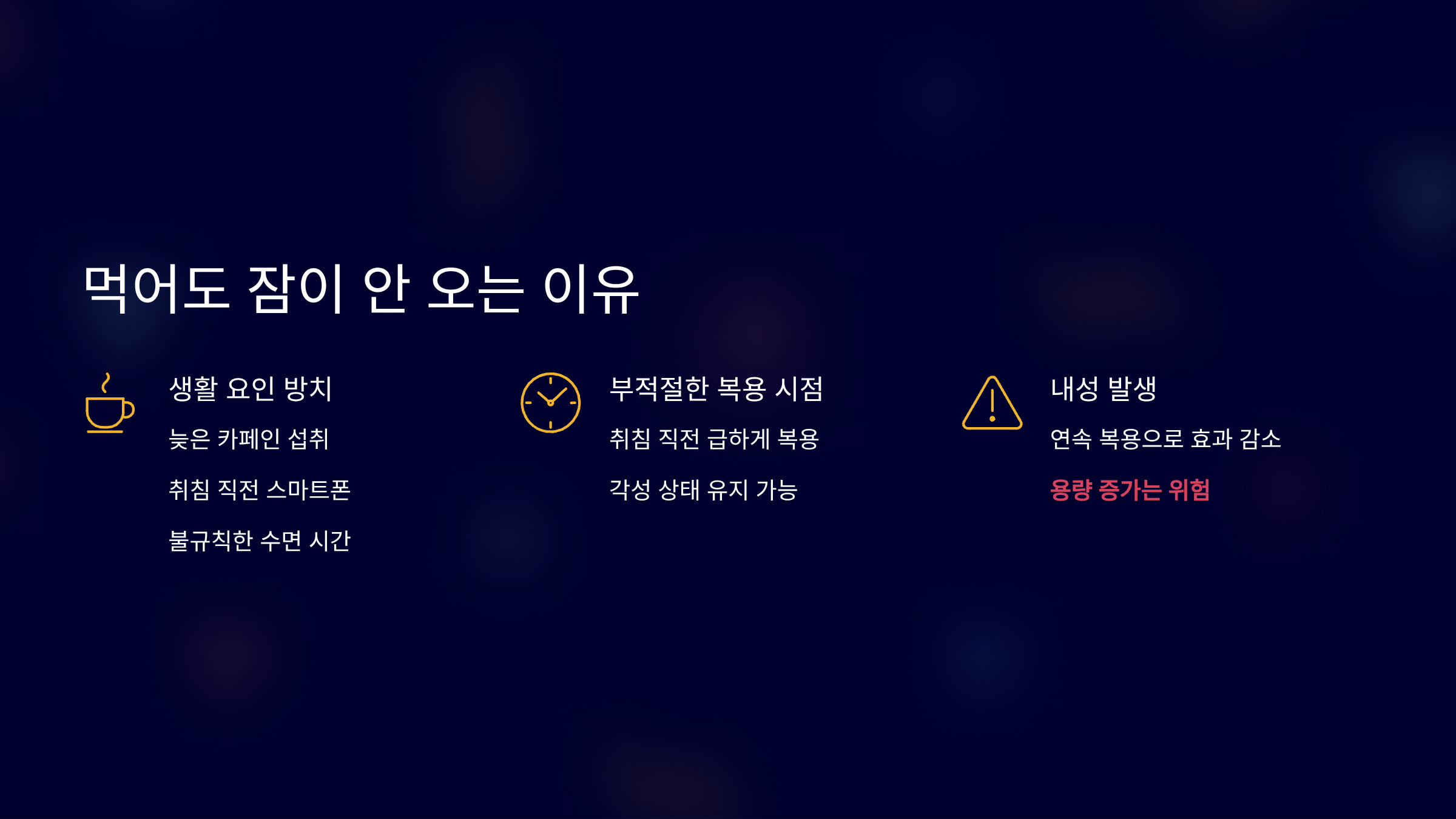 복용 시점도 중요합니다. 취침 직전에 급하게 먹으면 오히려 각성이 유지되는 경우도 있어요.