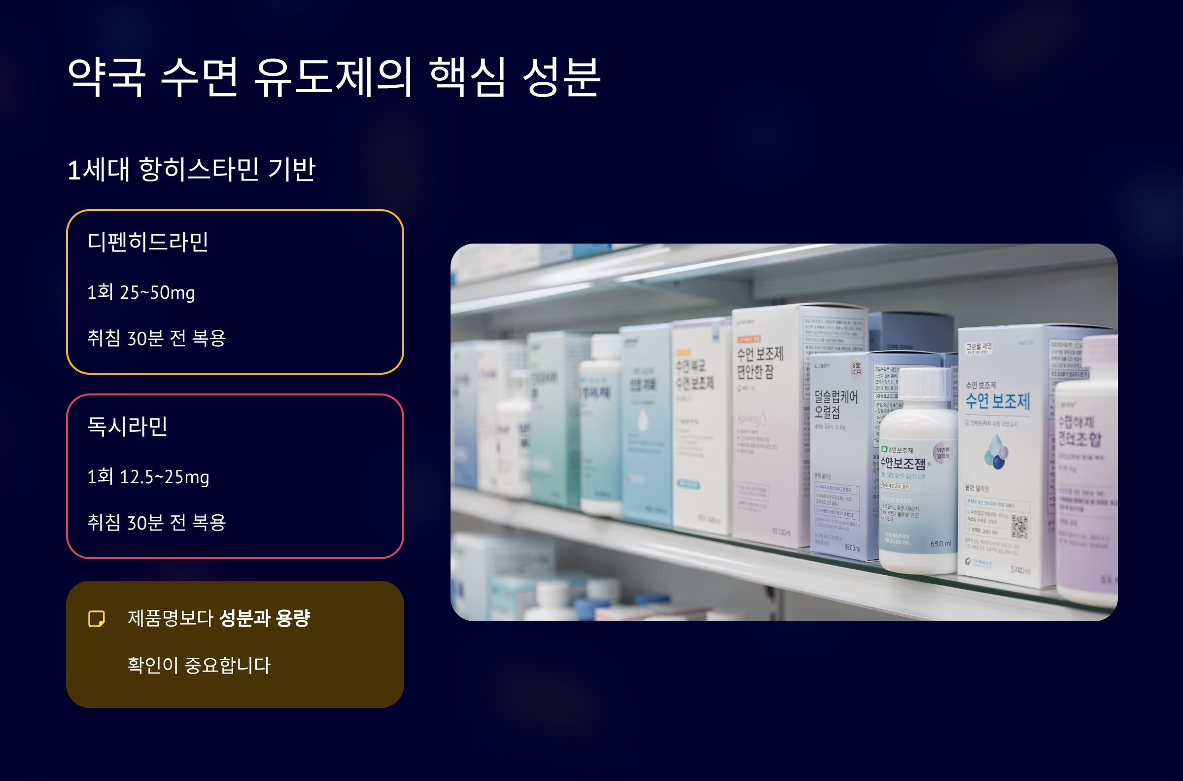 약국 수면 유도제는 제품명보다 성분과 용량 확인이 더 중요합니다.