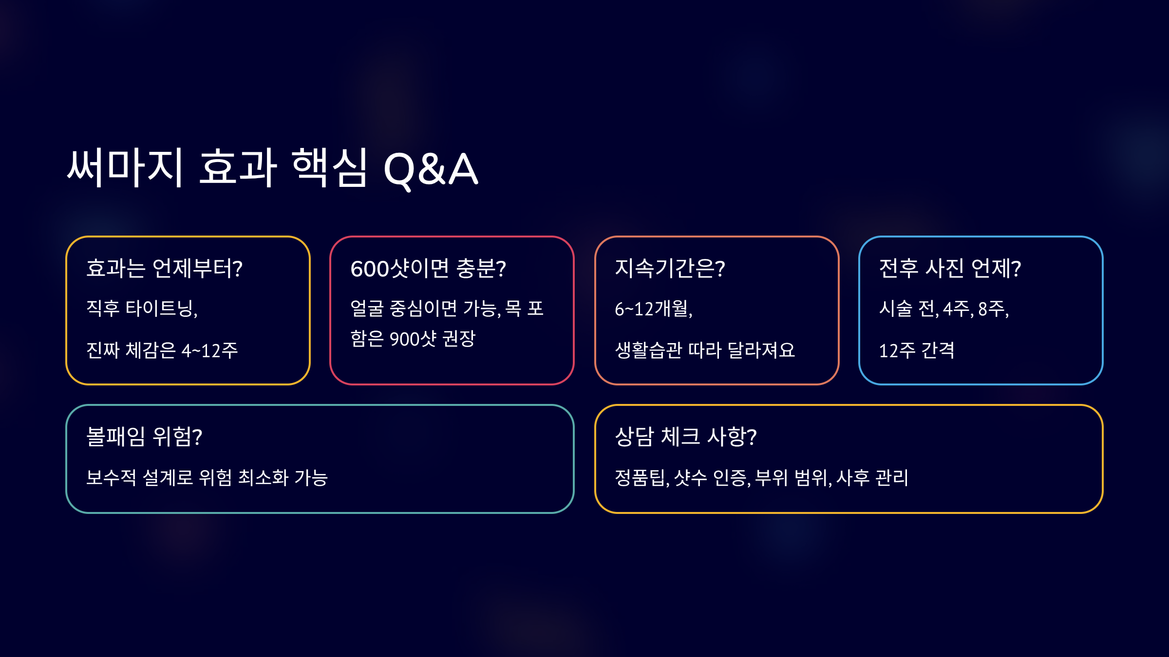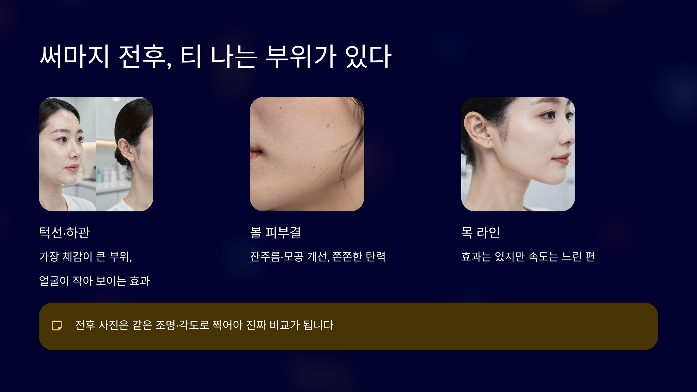 피부 두께, 처짐 정도, 생활 습관에 따라 체감이 달라집니다.