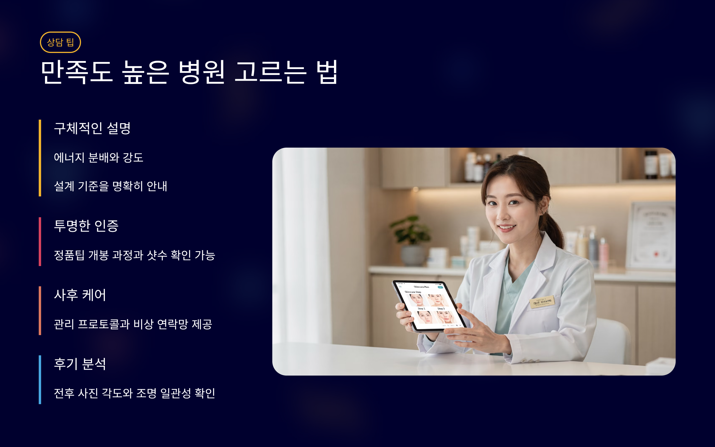 후기에서 돈 아깝다와 인생 시술이다가 갈리는 이유가 여기예요.