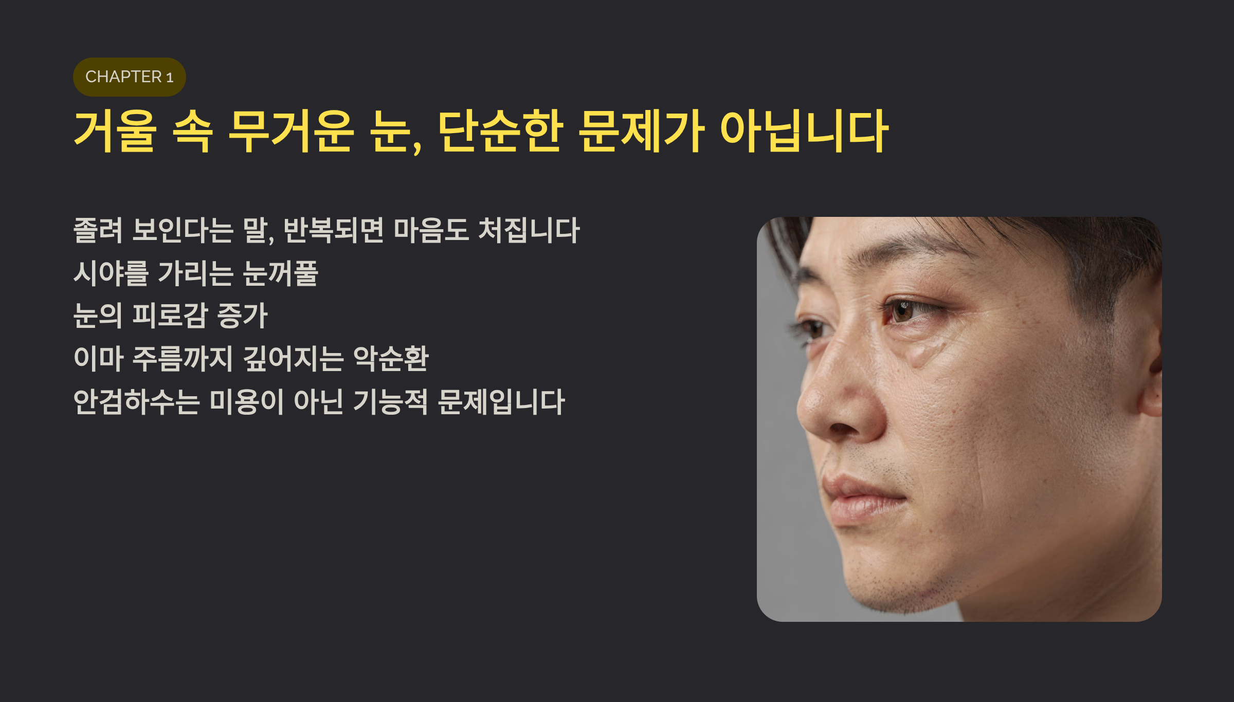 안검하수는 단순 미용 문제가 아닌 경우가 많습니다.