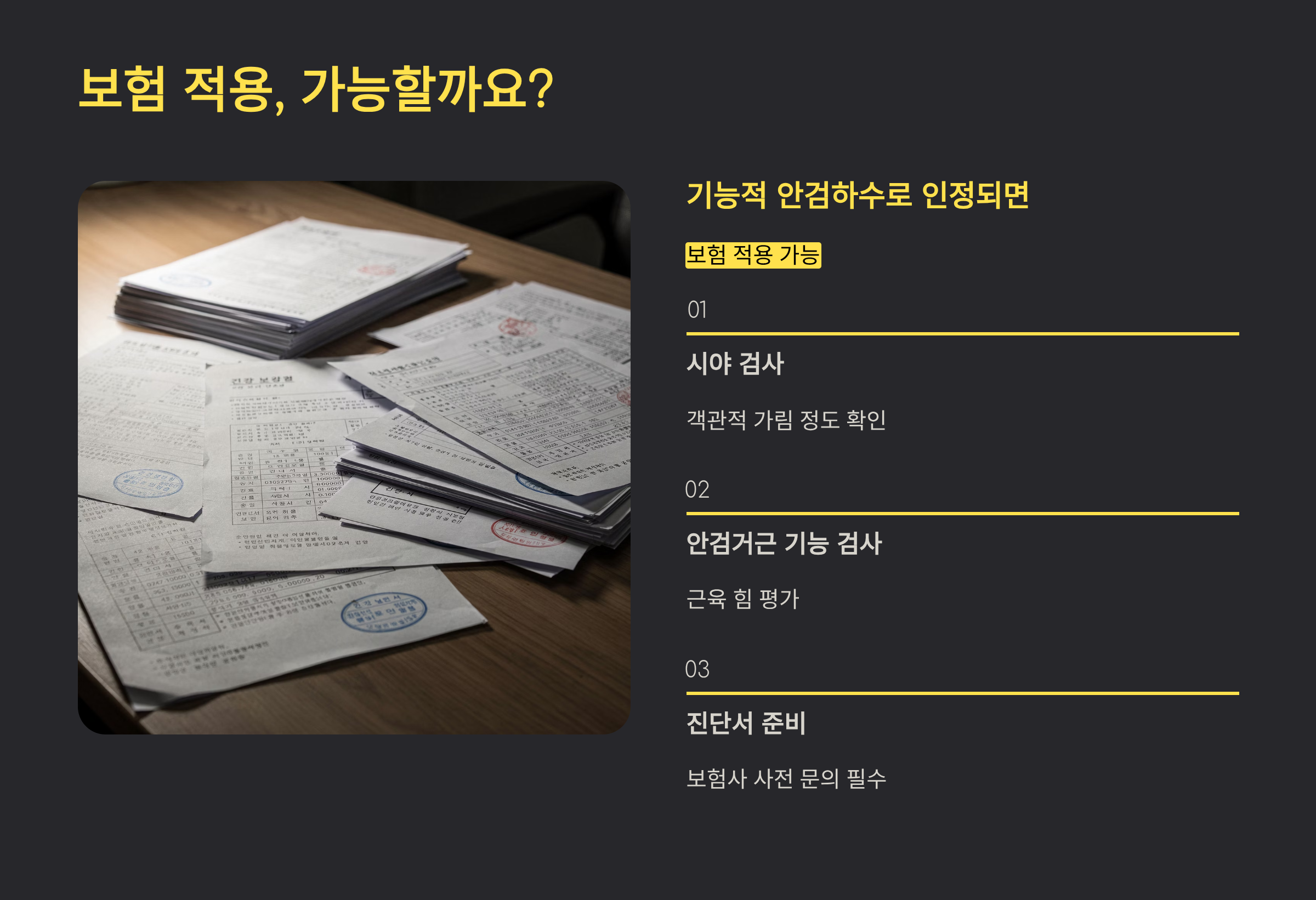 기능적 안검하수로 인정되면 보험 적용이 가능합니다.