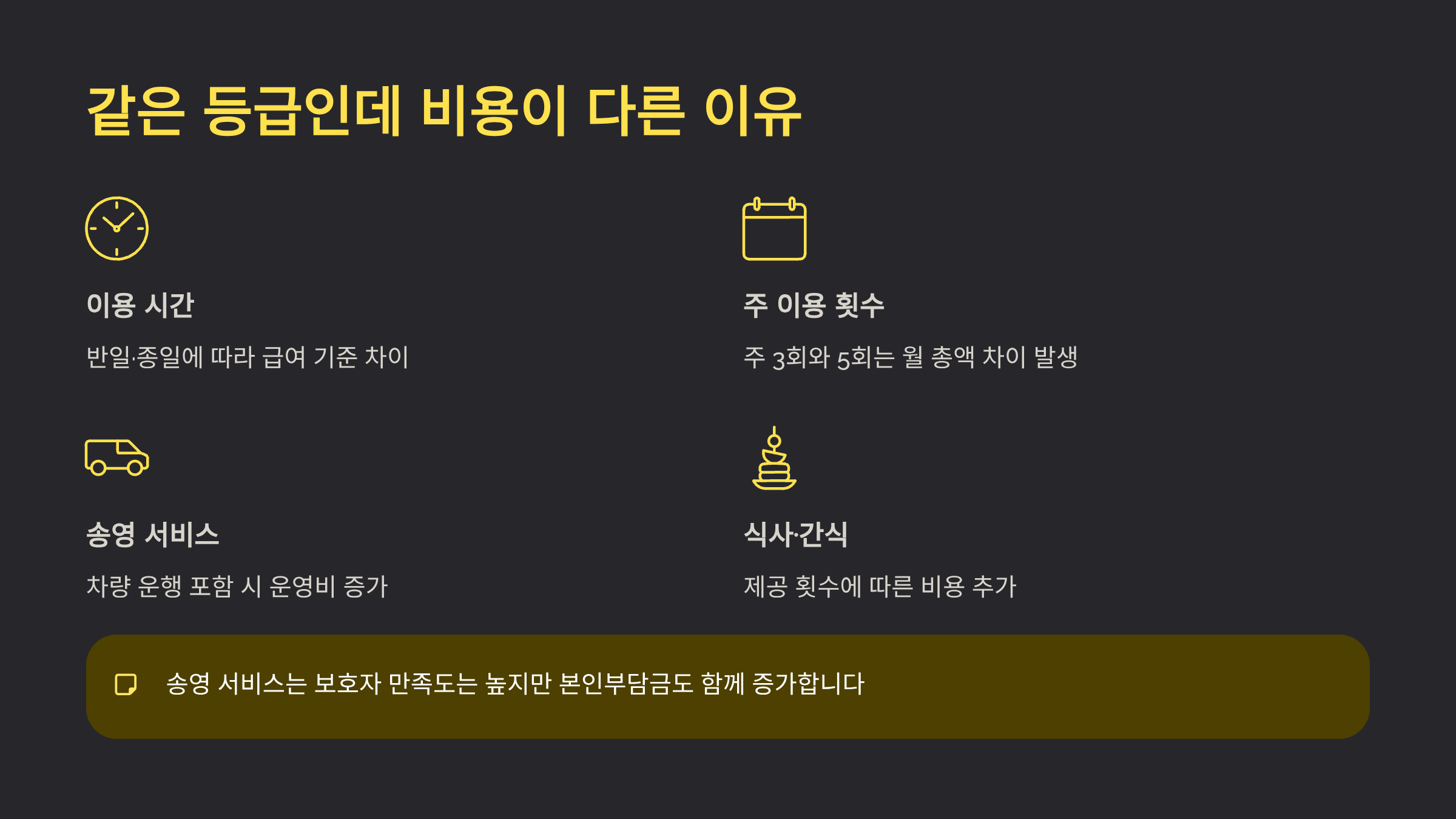 주간보호센터 비용은 월 정액 개념이 아닙니다.