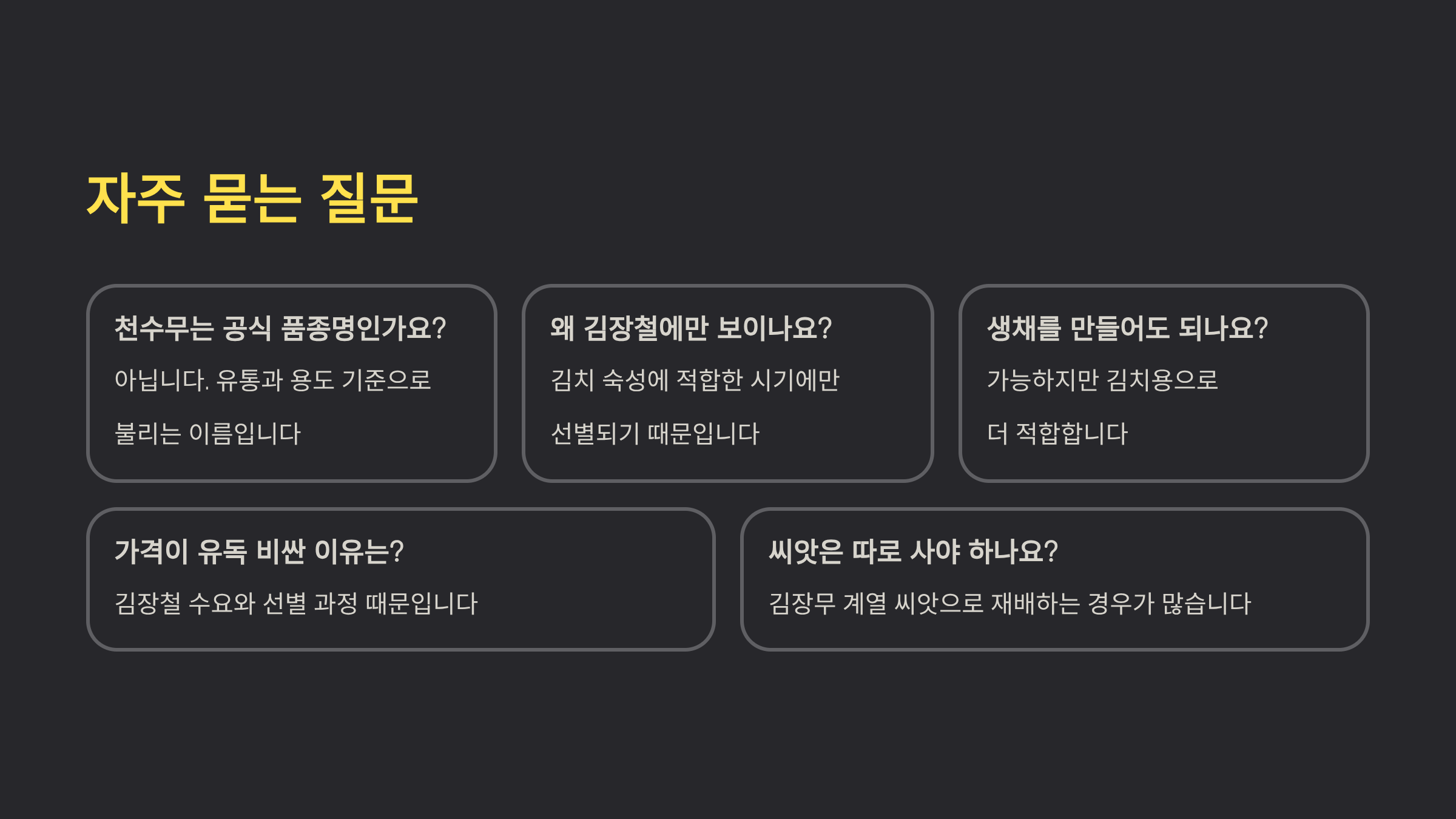무인데 왜 이름이 다르고, 왜 김치용으로 따로 불릴까요?