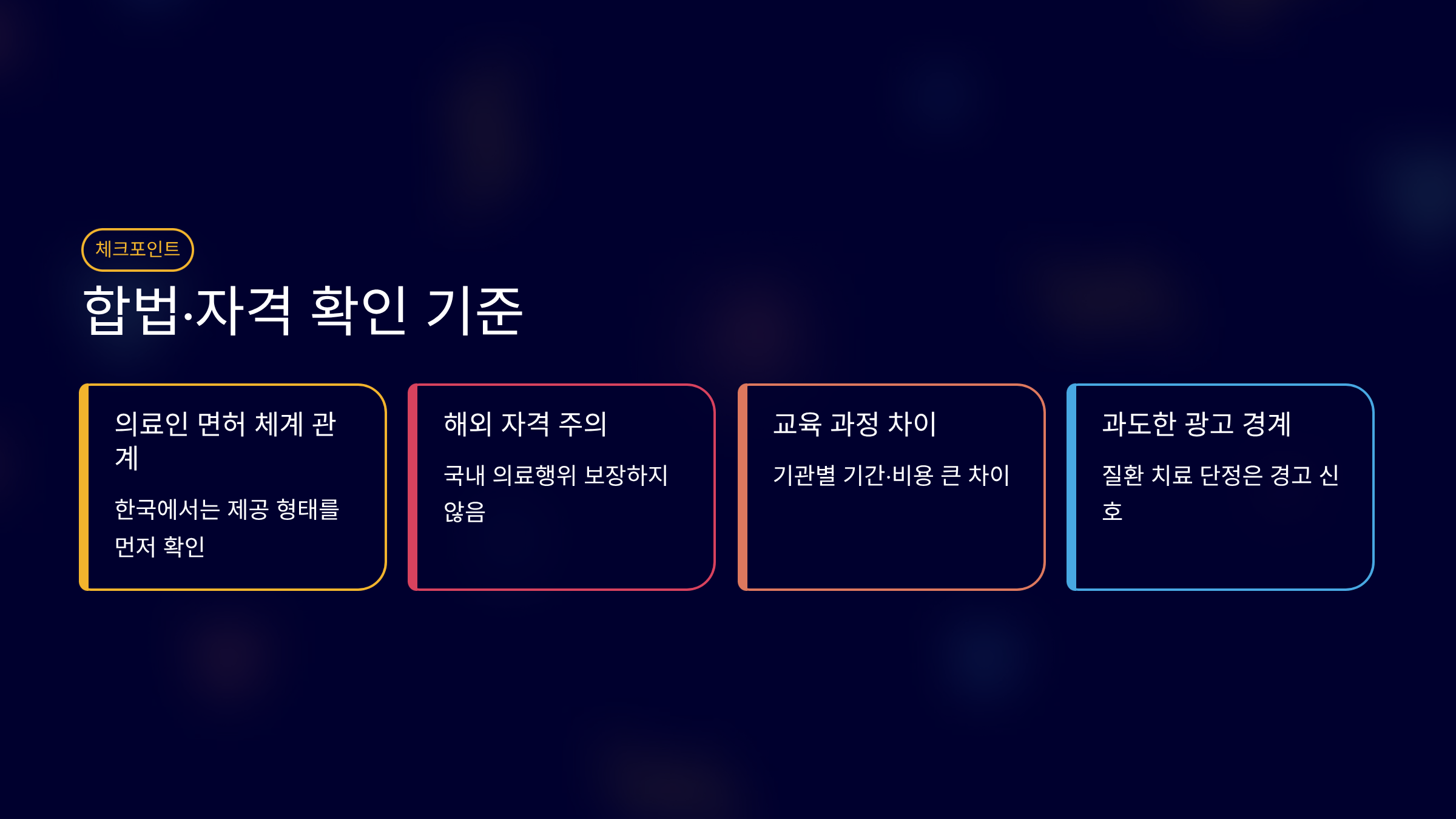 - 해외 자격·교육 이력만으로 국내에서 의료행위를 보장하지는 않는다