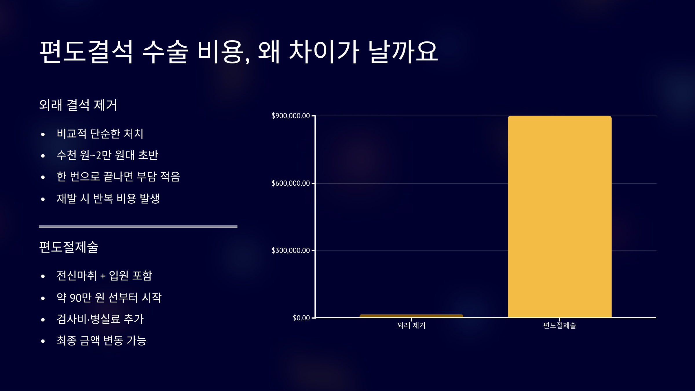 전신마취와 입원이 포함되면서 비용 체감이 달라집니다.