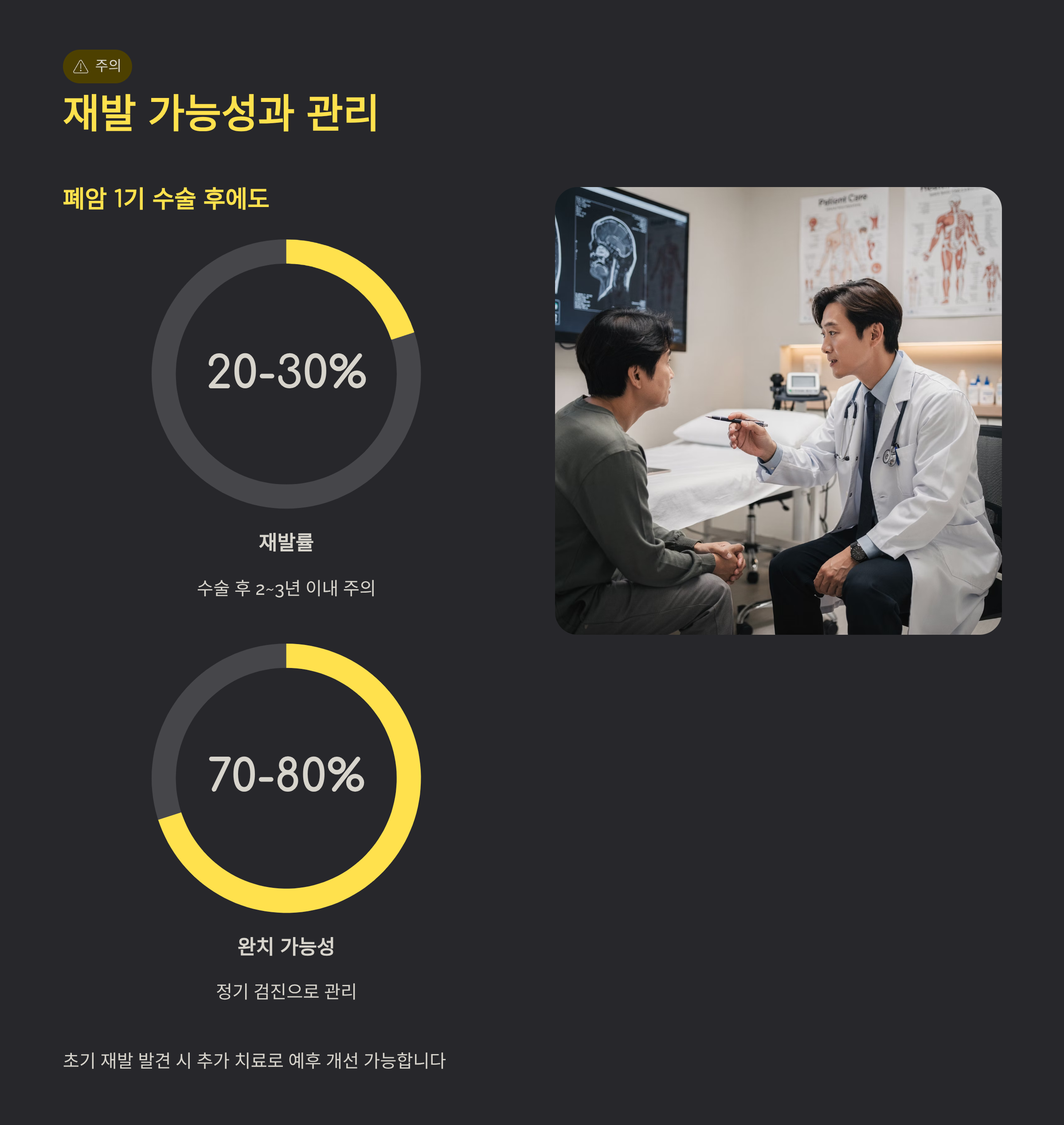폐암 1기 수술 후 재발률은 약 20~30퍼센트로 보고됩니다.