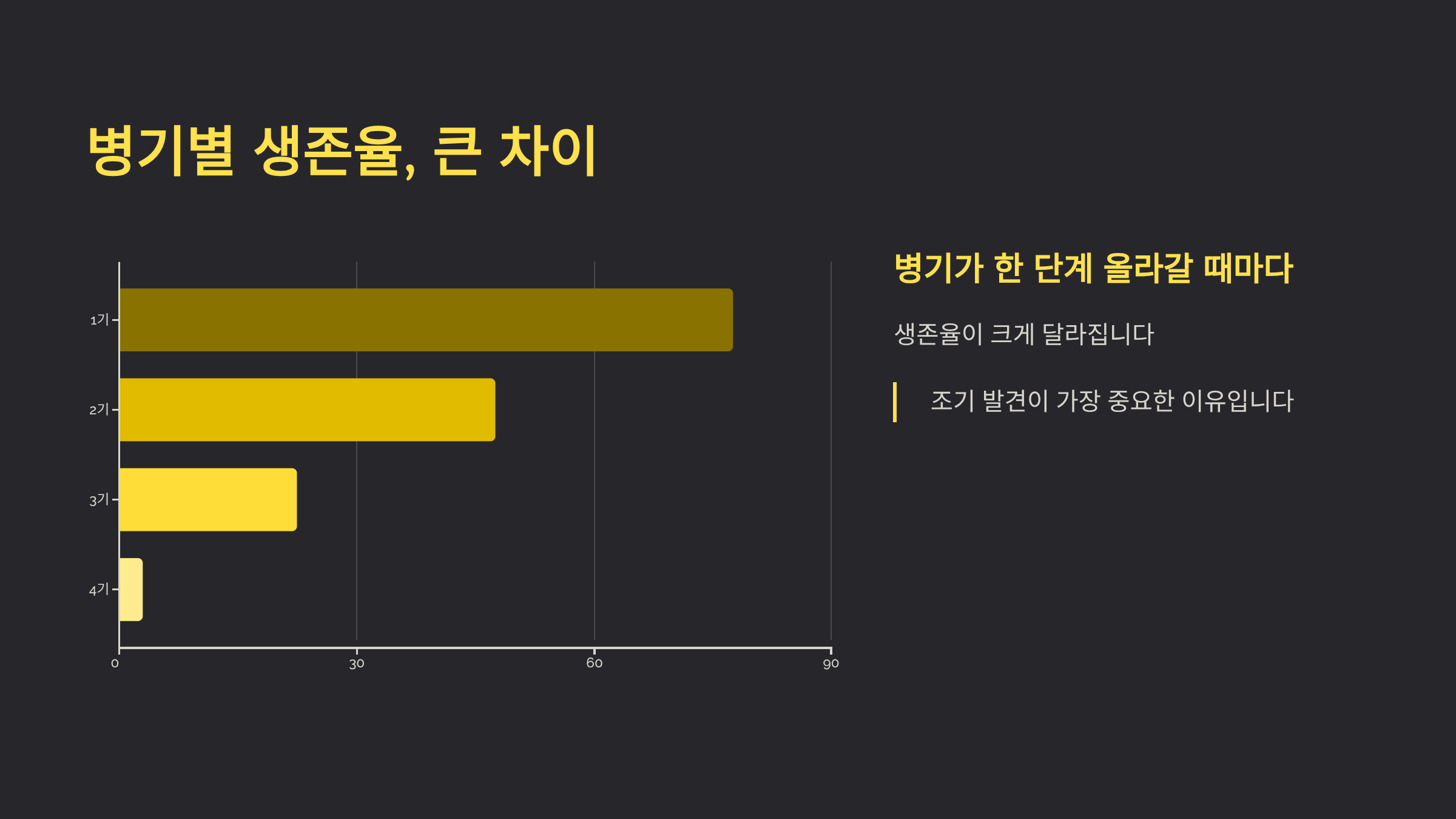 병기별 생존율 차이는 조기 검진의 가치를 보여줍니다.