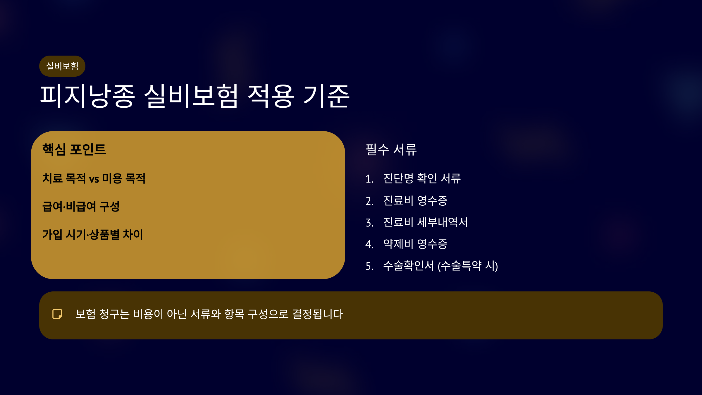 피지낭종 실비는 가입 시기와 상품에 따라 자기부담금, 보장 한도, 비급여 제한이 다르니 같은 수술이라도 결과가 갈립니다.