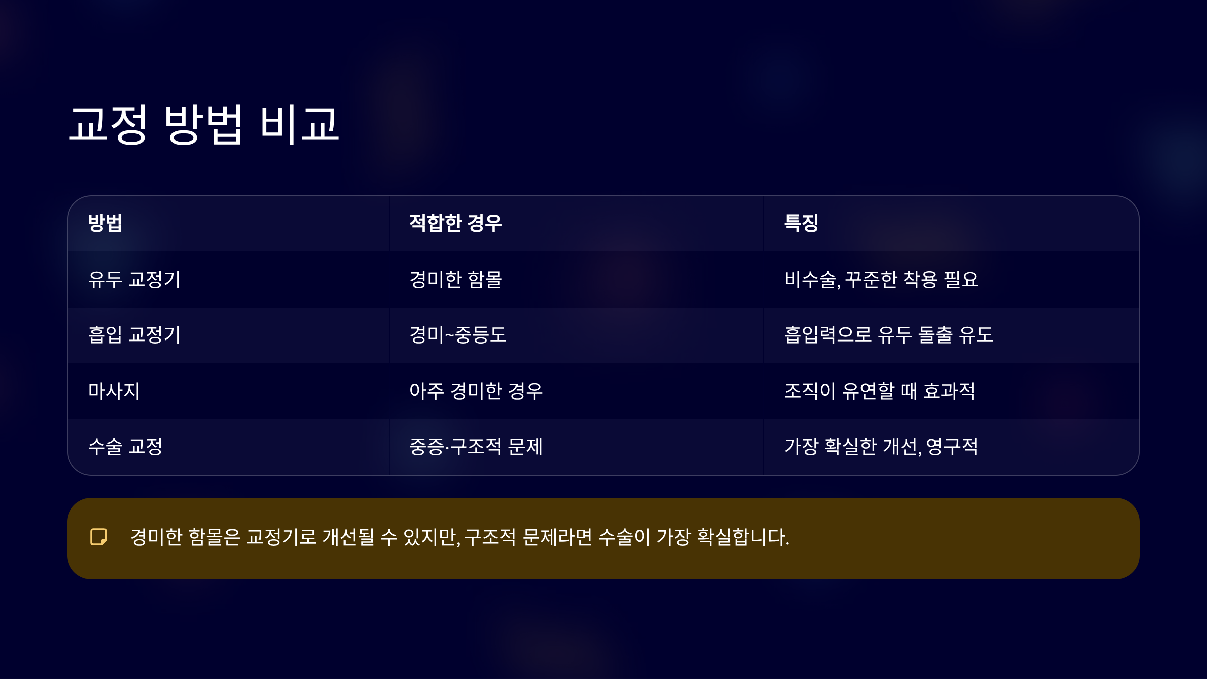최근에는 교정 치료나 수술을 통해 개선하는 사례가 많습니다.