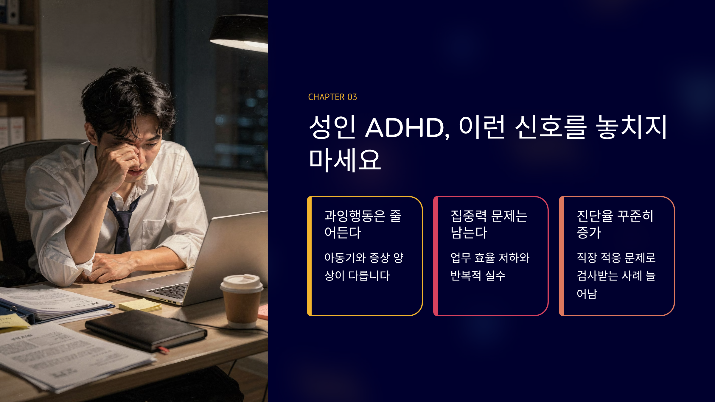 2026년 기준 성인 ADHD 진단이 꾸준히 증가하고 있습니다.